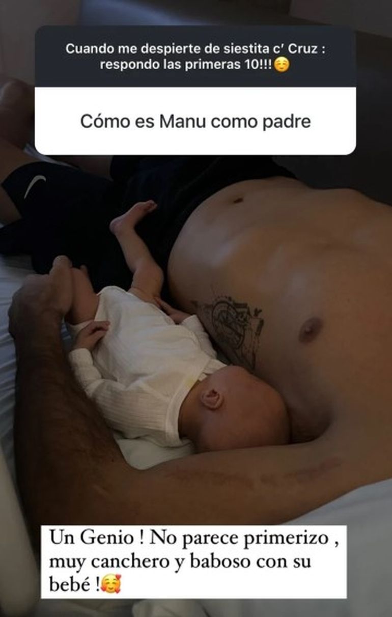 "¿Cómo es Manu como padre?", escribieron en las caja de preguntas que abrió la modelo. Ante esta pregunta, respondió: "Un genio! No parece primerizo, muy canchero y baboso con su bebé!". Más allá de la respuesta de su pareja, no es la primera vez que halagan al piloto por su rol como padre.