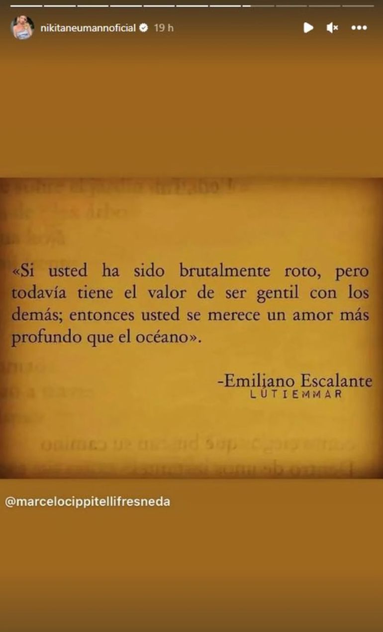 En este contexto, Nicole Neumann se encuentra algo triste por la situación y por no poder recomponer la relación con su hija. Por lo menos así lo dejó entrever en uno de sus últimos posteos, en los cuales compartió una frase que refleja su situación actual.