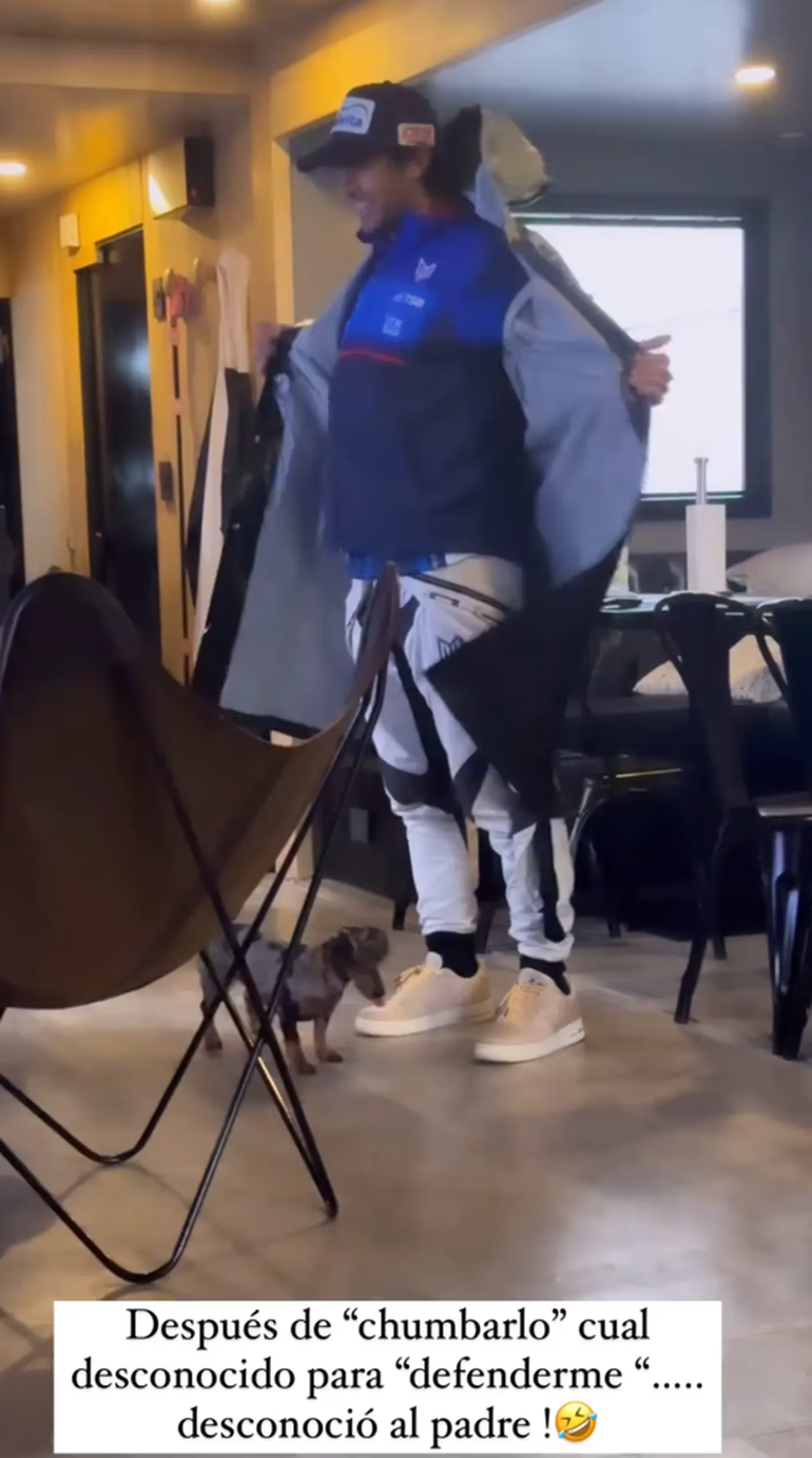 “Buen día, Loly. Soy yo, ¿cómo no me reconocés?”, se escucha que dice el deportista mientras se quita el sobretodo que traía puesto. “¡Mirá cómo se meó! Toda una meada corriendo para atrás del cagazo, ¡pobre!”, comentó Urcera mientras Nicole se encargaba de documentar el gracioso momento y enfocaba el rastro de orina que había dejado su mascota en el piso.