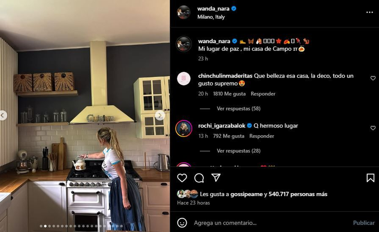 "Qué hermoso lugar", fue el comentario de "Rochi" dejó en la última publicación de Wanda Nara en Instagram, donde mostró su casa de campo en Italia. Este gesto fue realizado por la también cantante luego que Lali haga sus declaraciones. De esta forma, otra ex compañera la China marcó la distancia de ella.