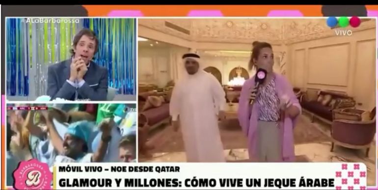 En A La Barbarossa, Noelia salió en vivo desde el móvil mostrando todos los detalles de uno de los palacios más lujosos ubicado en Qatar. La propiedad le pertenece a un jeque árabe llamado Abdullah, quien la recibió para mostrar su lujoso hogar.