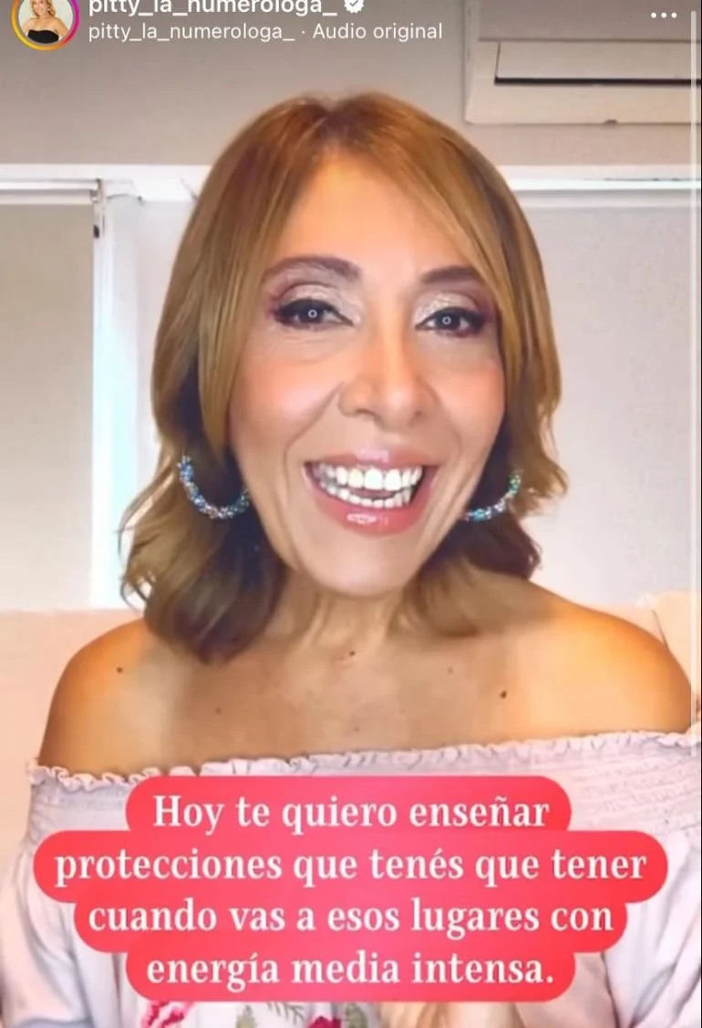 En su cuenta oficial de Instagram, @pitty_la_numerologa, donde tiene casi 900 mil seguidores, la especialista compartió un video donde contó como cuidarse de las energías: “Te quiero enseñar protecciones que tenés que tener cuando vas a esos lugares con energía media intensa”.