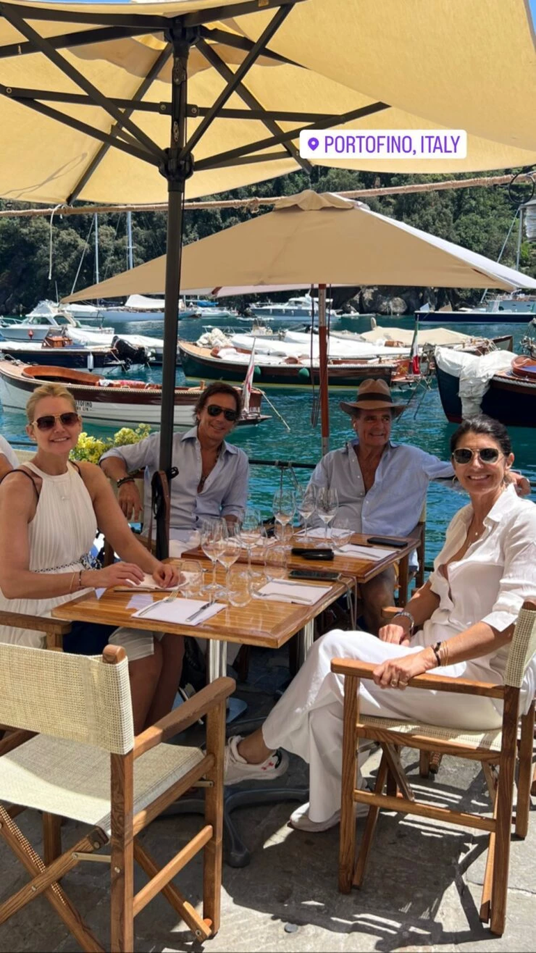 Pero eso no fue todo, ya que también aprovecharon la visita para estar con viejos amigos, con quienes almorzaron. También, se dieron una vuelta por Portofino, el pueblo destacado por su pesca. Allí, a modo de comida romántica, aprovecharon la vista al puerto.