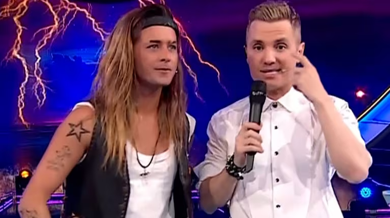 Al finalizar el video de su presentación, se hizo presente en el piso. Y a tono con su bandana, melena lacia y chaleco de cuero, de fondo sonaba el clásico “Livin’ On A Prayer” de Bon Jovi. Como si se sintiera contagiado por la música, entró de manera enérgica, gritando y saludando a la tribuna. “¡Qué look, qué vincha!”, lo elogió del Moro.
