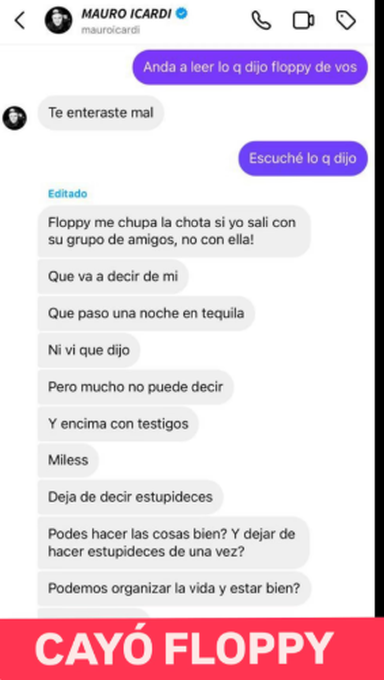 En las últimas horas aparecieron fuertes chat que muestran mensajes que habría mandado el futbolista Icardi para Wanda, quien atraviesa un amorío con el cantante L-Gante. Fue el periodista Ángel de Brito quien compartió los chats en donde se los involucra también a Lali Espósito, Ca7riel, Paco Amoroso y Floppy Tesouro.