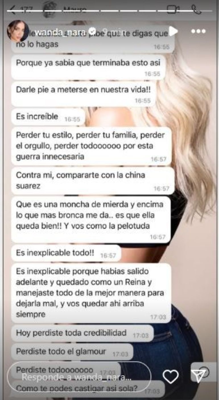 Es que en sus súplicas por intentar arreglar las cosas, Mauro Icardi le envió mensaje a Wanda Nara en los que describe de forma cruel a la China Suárez. Lejos de generar empatía, provocó que la conductora expusiera todo en sus redes sociales y así volvió a dejar mal parado a su ex pareja.