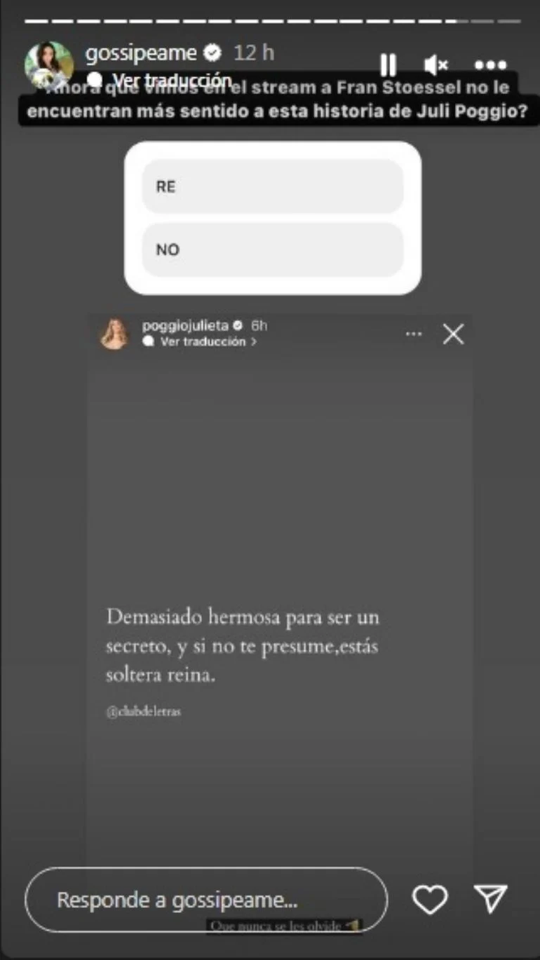 Por su parte, tras escuchar estas declaraciones, Pochi de Gossipeame aseguró que el picante mensaje que Poggio había compartido en sus redes podía estar vinculado a este tema.