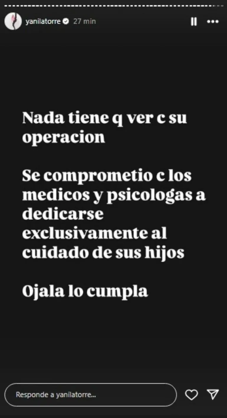 Finalmente, en referencia a los profesionales de la salud que están asesorando a la mediática, Yanina cerró: "Las psicólogas hablan de estrés post traumático. Recomiendan tranquilidad y (estar en) familia".