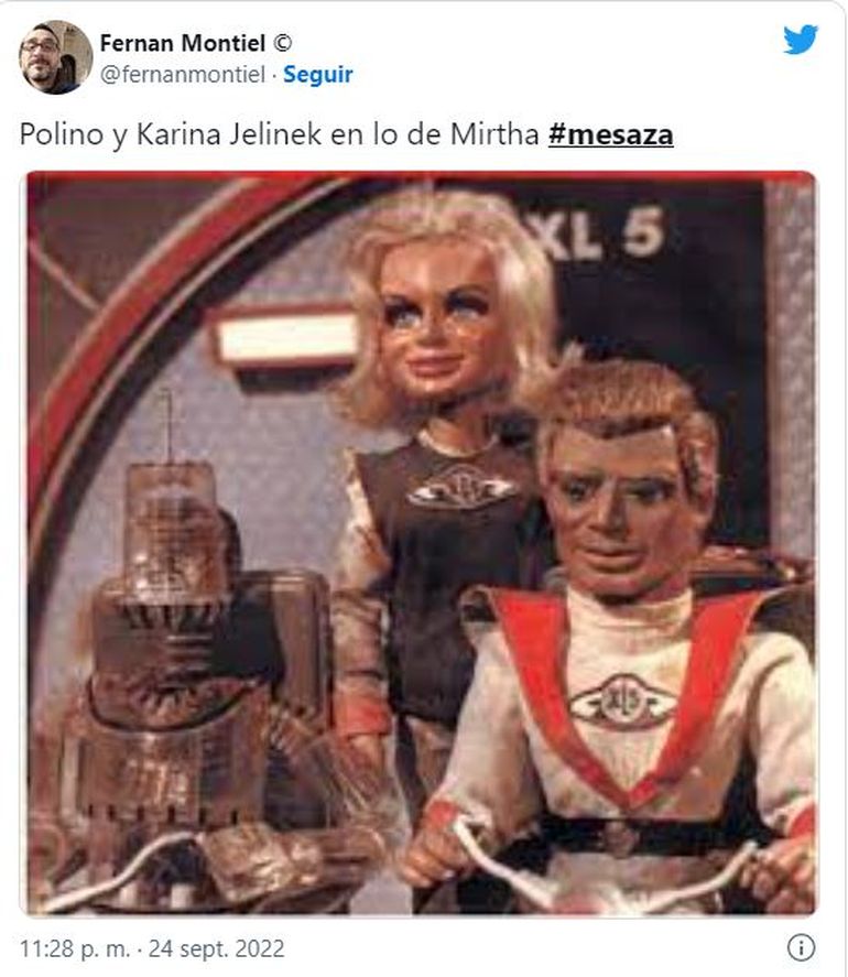 Asimismo, el periodista protagonizó otro momento divertido en la mesa de Mirtha Legrand, esta vez junto a la modelo Karina Jelinek, a quien el periodista frenó en la mesa para que no volviera a generar comentarios.