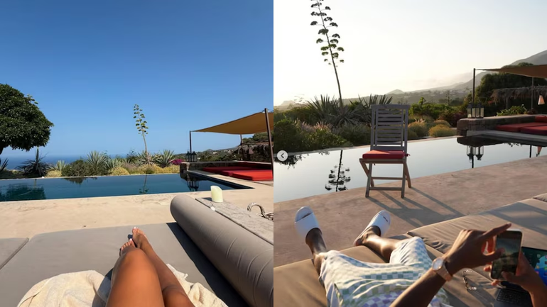 Tanto la joven promesa del Barcelona FC y la joven de 30 años publicaron fotos tomadas desde los mismos lugares y las mismas perspectivas, incluyendo una lujosa piscina en una terraza en la que se aprecia de fondo el atardecer.