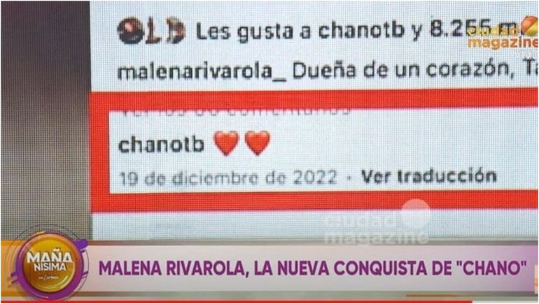 "Debe haber dicho 'uy, le dije a esta que es re chusma que tenía tos. Va a salir publicado y van a empezar las especulaciones", opinó Pampito, dándole paso nuevamente a su compañera para que hablara más de la nueva novia de Chano: "Es muy diosa. Tiene un Instagram artístico y otro personal. Chano le comenta las fotos, le pone corazoncitos".