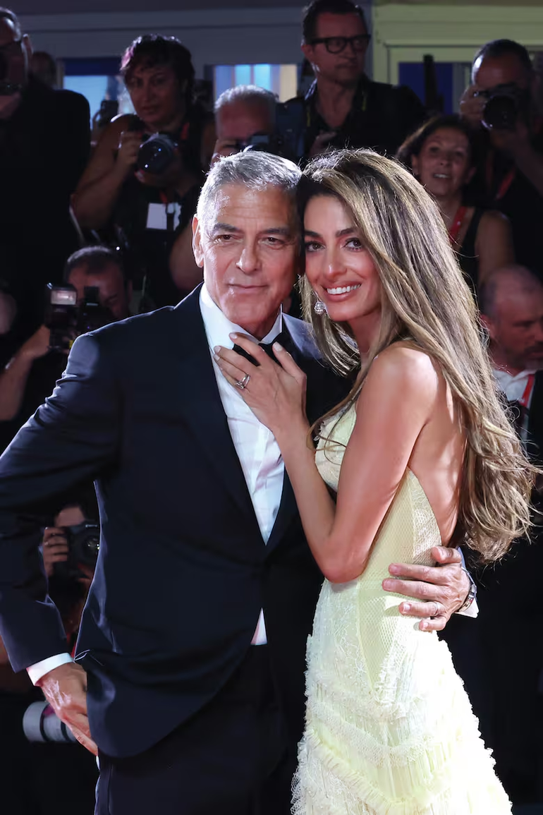 Junto a George Clooney, los actores posaron para los medios en una suerte de cita doble con sus mujeres. Así como Pitt desembarcó en las puertas del Palazzo del Cinema de la mano de la diseñadora de origen latino –lookeada con un sensual vestido drapeado de hombro descubierto de Entire Studios–, Clooney llegó escoltado por su mujer, la abogada libanesa Amal.