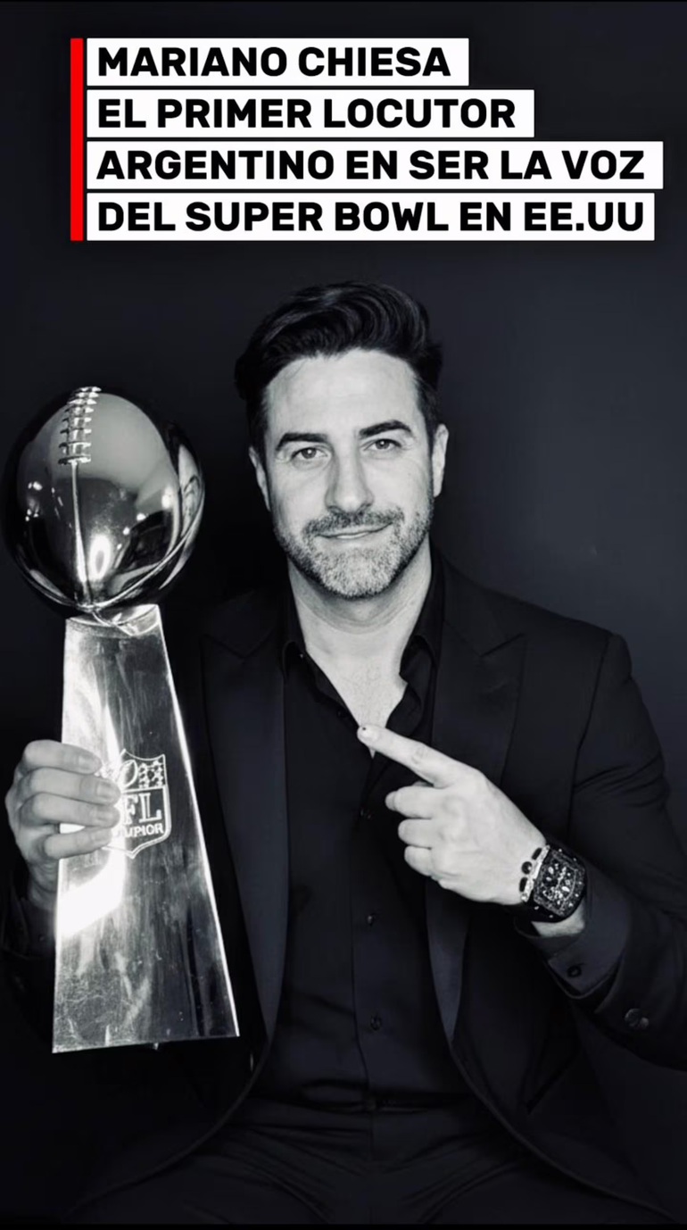 Mariano Chiesa logró todo un hito en la historia de la locución argentina. Ayer se convirtió en el primer locutor argentino en ponerle voz a la final del Super Bowl en Estados Unidos. Este gran logro en su carrera profesional llegó de la mano de Telemundo, uno de los canales que tiene los derechos de transmisión en español de la NFL.