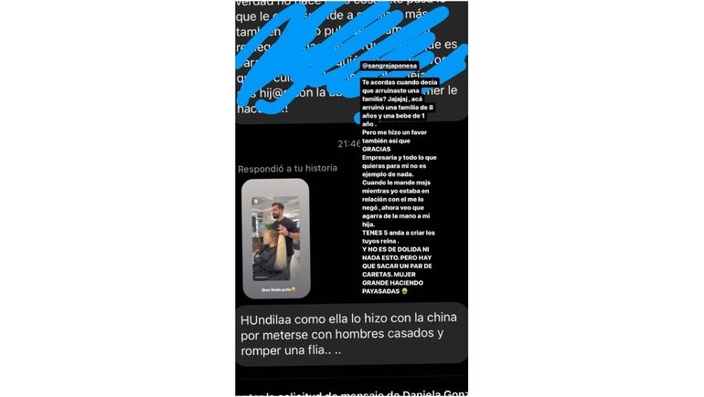 “Empresaria y todo lo que quieras para mí no es ejemplo de nada. Cuando le mandé mensajes mientras yo estaba en relación con él me lo negó, ahora veo que agarra de la mano a mi hija. Tenés 5, andá a criar a los tuyos, reina”, sumó la mediática en referencia a Wanda Nara.