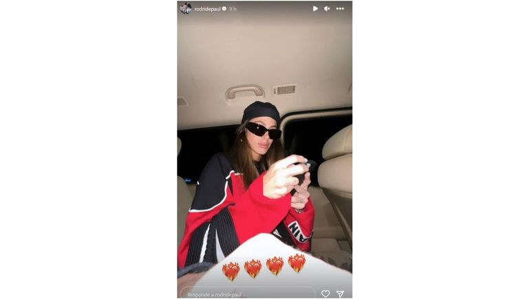 En su cuenta de Instagram, Rodrigo mostró lo enamorado que está de Tini Stoessel al compartir una foto de ella paseando en auto por Madrid. Con un buzo oversized negro, blanco y rojo, anteojos negros y un coqueto pañuelo en la cabeza, el futbolista le agregó a la tierna postal una serie de emojis de corazones, demostrando así su amor por la cantante.