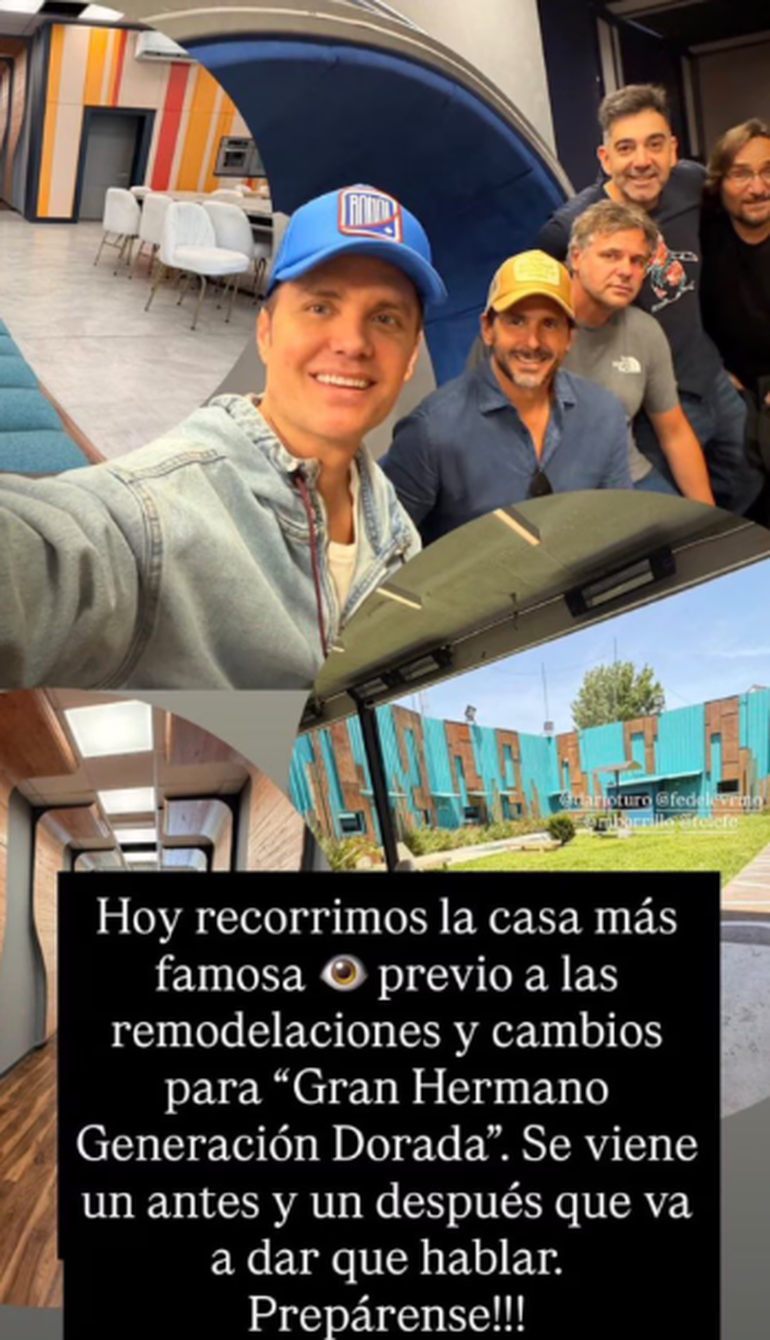 "Hoy recorrimos la casa más famosa previo a las remodelaciones y cambios para ‘Gran Hermano Generación Dorada’. Se viene un antes y un después que va a dar que hablar. Prepárense”, escribió Santiago junto a una imagen donde aún no se detectan remodelaciones aunque están previstos fuertes cambios en la estética. Junto a él estuvieron Darío Turovelzky, Federico Levrino y Martín Borrillo, directores y productores del canal.