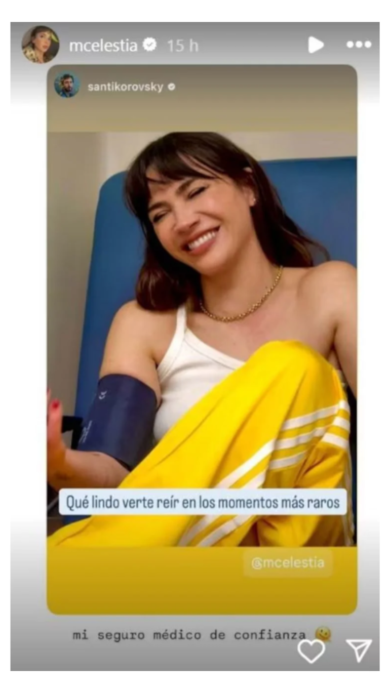 Además, días atrás, Korovsky había compartido en sus historias de Instagram una imagen de Celeste Cid en un consultorio médico, donde se puede ver que le están tomando la presión a la artista. “Qué lindo verte reír en los momentos más raros”, escribió en tal oportunidad el ganador de un premio Emmy. “Mi seguro médico de confianza”, sumó Celeste, encantada. Esa situación había generado alerta en los medios e internautas que siguen a la actriz. Luego de lo sucedido ayer y su declaración, el panorama es más exacto y la tranquilidad crece.