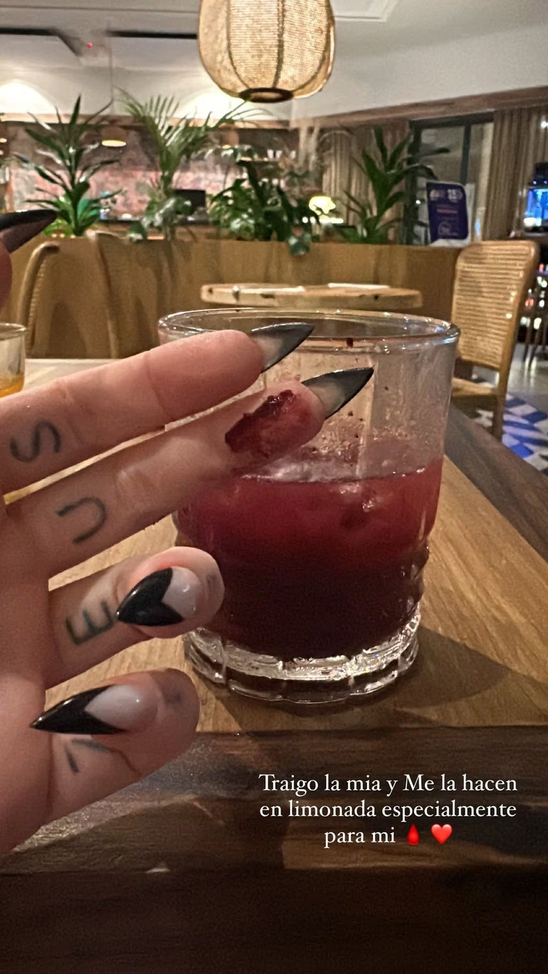 Todo comenzó con un posteo en el que mostraba un video de su cena, y cuando una seguidora le preguntó qué estaba tomando, respondió sin tapujos: “Sangre”. Inmediatamente después, compartió una imagen de la bebida y escribió: “Traigo la mía y me la hacen en limonada, especialmente para mí”.