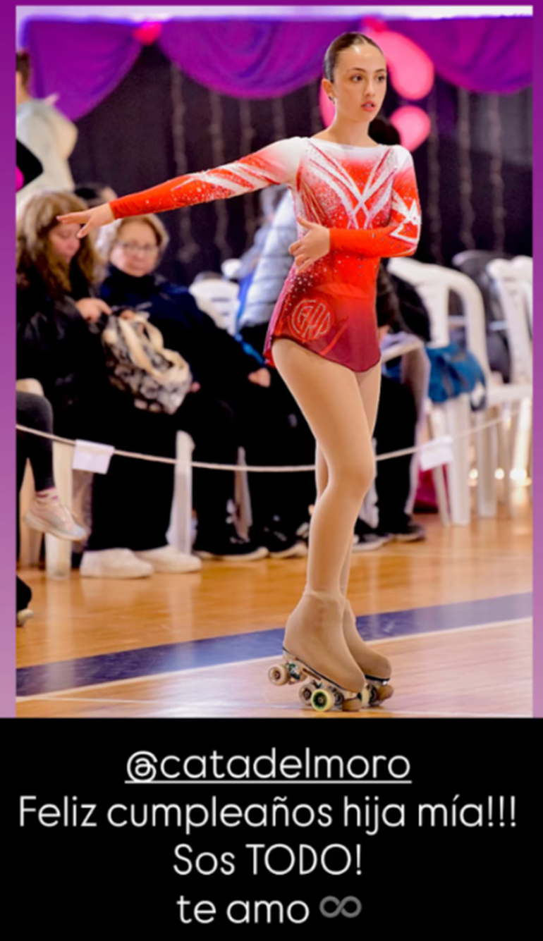 En el posteo, el animador compartió una imagen que rápidamente despertó ternura y elogios entre sus fans. Se trata de una fotografía de Catalina luciendo un vestuario de patinaje artístico, disciplina que practica con dedicación. En la postal se la puede ver con un traje en tonos rojos y blancos, adornado con brillos y detalles en strass, además de las siglas “CARP” bordadas en un lateral, en alusión a River Plate, el club de sus amores. En sus pies, los tradicionales patines de cuatro ruedas completan la escena, dejando en claro la pasión que la joven siente por este deporte.