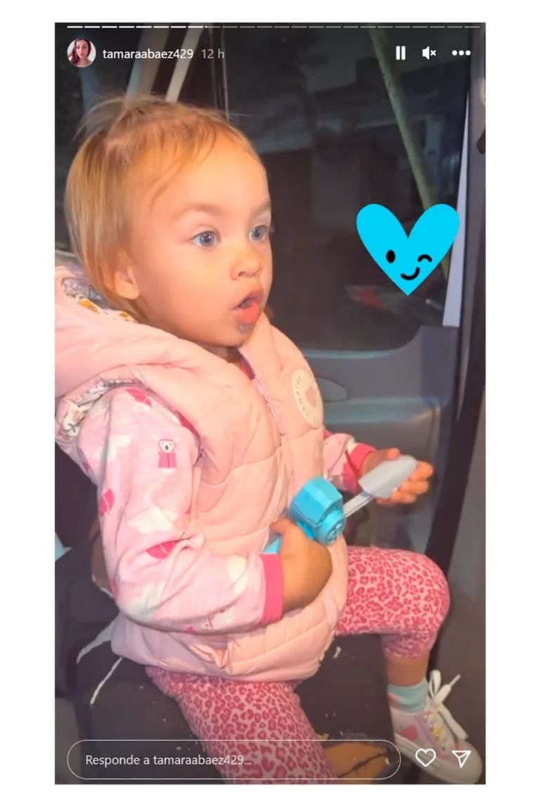 La influencer compartió varias imágenes, desde el auto en el que llegó hasta el lugar de detención de su ex pareja. En las fotos se la puede ver a ella y también a la pequeña quien posó con una sonrisa y jugando, muy divertida a pesar de todo, momentos antes de volver a ver a su padre.