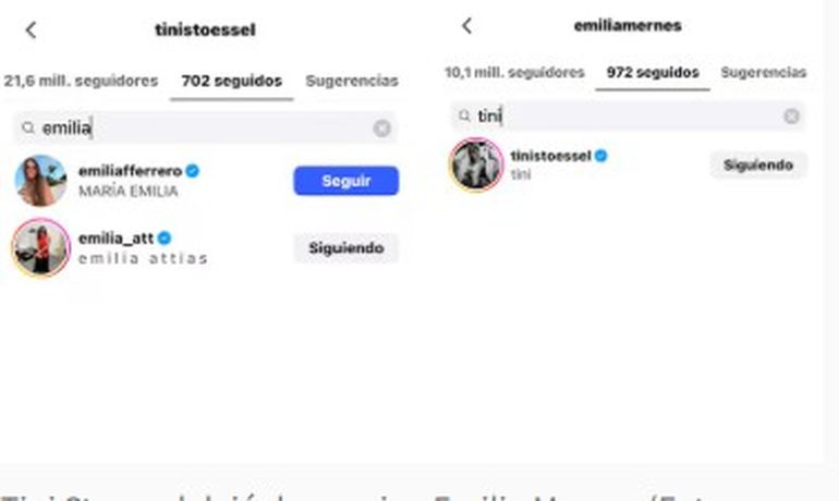 Según se puede ver, fue Stoessel quien dejó de seguir a Emilia pero no al revés: la novia de Duki sigue siguiéndola desde su cuenta personal. Ante esta situación, y al entender que cambiaron las cosas entre ambas, las redes sociales estallaron y se hicieron eco de lo sucedido.