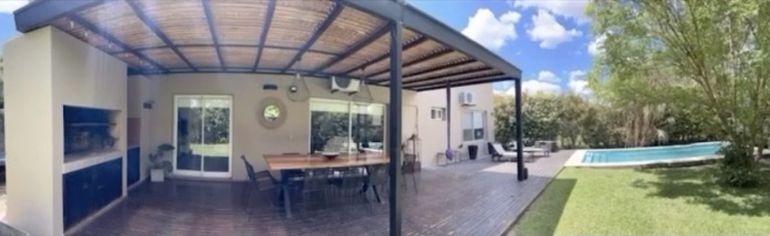 Se debe a que María Fernanda Callejón se inclinó por un espacio con reposeras y hamacas paraguayas para relajarse durante el post o la previa al ingreso a la pileta. Pero también, a modo de quincho, colocó una mesa con sillas para poder comer cerca de la parrilla.