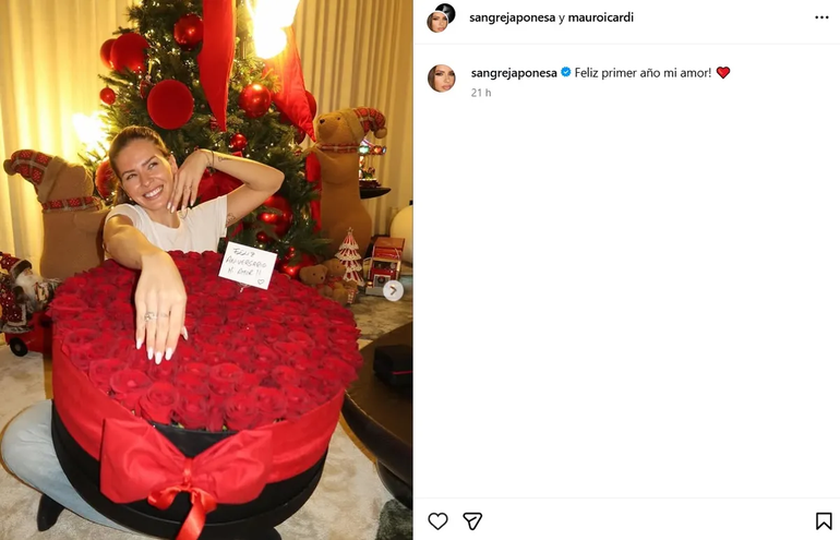 Mientras tanto, el delantero del Galatasaray sorprendió a la China desde Estambul con un romántico ramo gigante de rosas y un anillo de diamantes. El futbolista celebró su primer año como pareja indicando: "¡Feliz aniversario mi amor!", mientras que la intérprete posteó: "Feliz primer año mi amor!", compartiendo imágenes de su reacción.