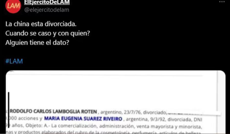 Con la aparición de un documento judicial en el que se indica que el estado de María Eugenia Suárez Riveiro es divorciada las especulaciones sobre quién fue su marido fueron diversas en las redes sociales, tras la publicación que hizo LAM en X. Para conocer esta información hay que remontarse al 2022, cuando Isabel Luco Morandé brindó una entrevista que confirmó que se había realizado una boda.