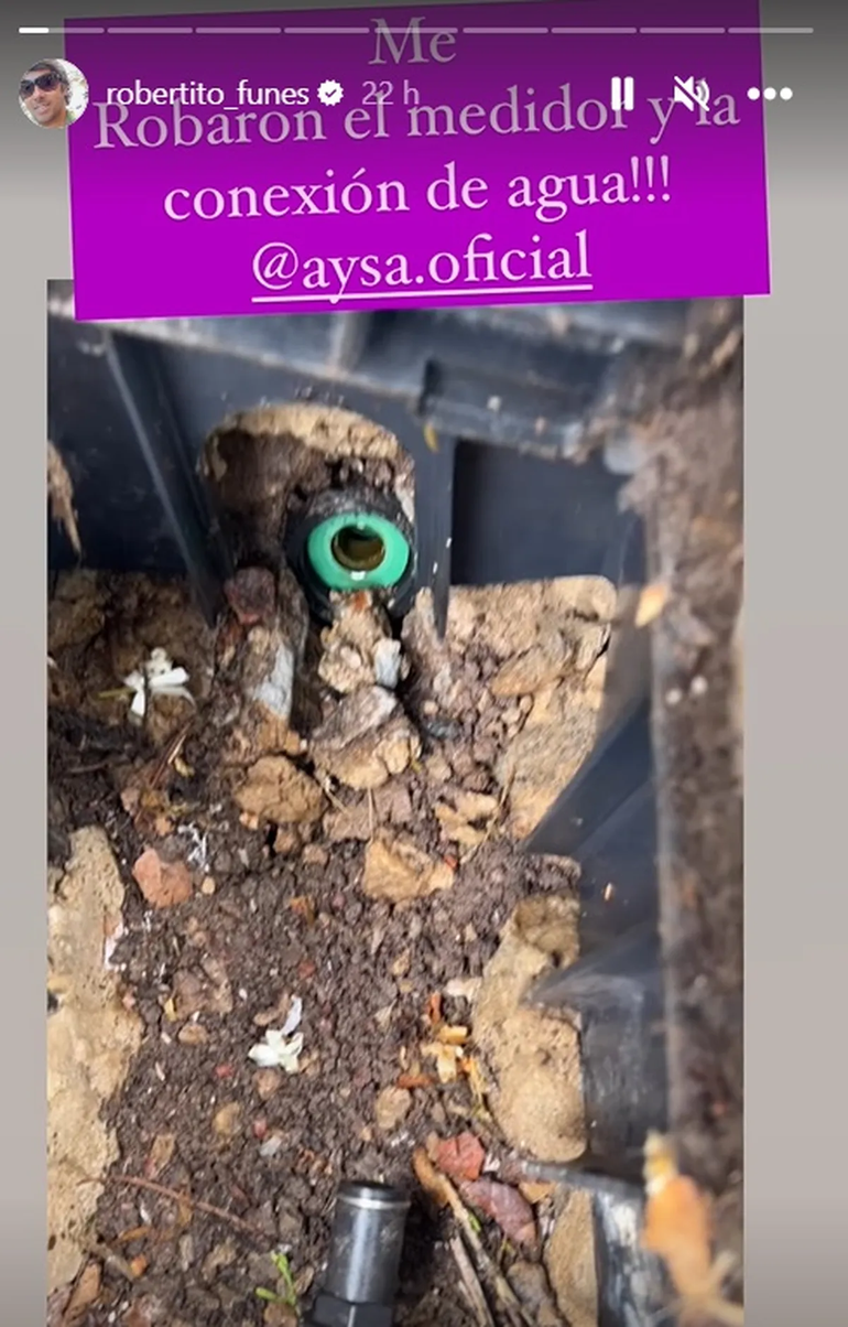 El conductor no ocultó su enojo y expuso el caso en su cuenta de Instagram. " Me robaron el medidor y la conexión de agua. Vereda nueva, pago mis impuestos, servicios, cumplo como se debe y estos chorros te roban los medidores”.