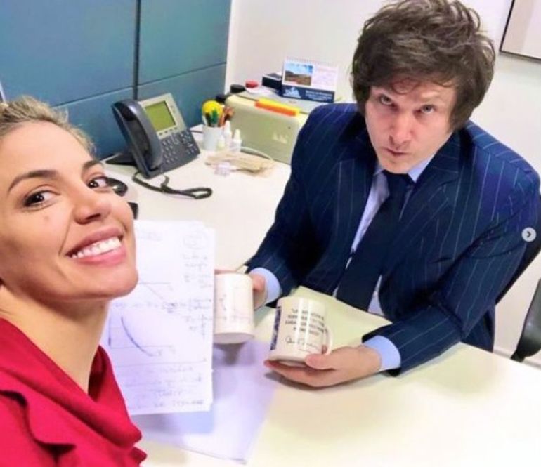 "Un día llegó a Polémica... y a mí me fascinaba lo que él decía de economía, de lo social. Y un día dije “yo necesito que este hombre sea mi maestro...” Y me acerqué a él para unas clases de economía. Iba a su oficina, me veía todo el mundo. Había una computadora, un pizarrón, unas tazas sobre Milton Friedman. El día que él gana como presidente yo subí las fotos de mis apuntes, tengo libros, tengo todo. Tomaba tres horas por día, ponele", confesó Virginia sobre el inicio de la relación.