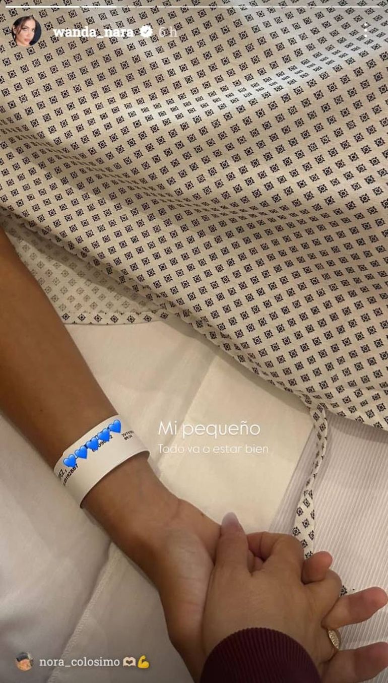 Wanda Nara realizó una publicación que preocupó a sus seguidores. Es que compartió una foto sosteniendo la mano de un joven con una pulsera de internación acompañada del texto: "Mi pequeño, todo va a estar bien". Por lo que todos dedujeron que uno de sus hijos había tenido un problema de salud.
