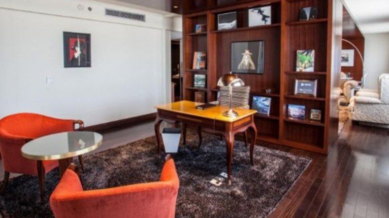La suite está dotada de un triple ingreso. Además, el espacio cuenta con una decoración que incluye obras de arte de reconocidos artistas plásticos, velas y candelabros.