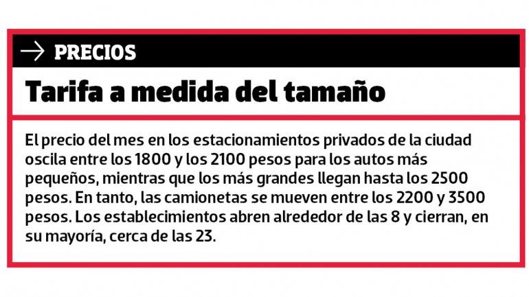 Los estacionamientos privados de la ciudad le dan pelea al Sistema Automatizado de Estacionamiento Medido (SAEM) con los precios. Si bien el valor de la hora es considerablemente más elevado que el que rige en las calles, ofrecen planes para las personas que trabajan en el centro que arrancan en los 1500 pesos, mientras que el abono mensual de la prestadora es de 1700 pesos.