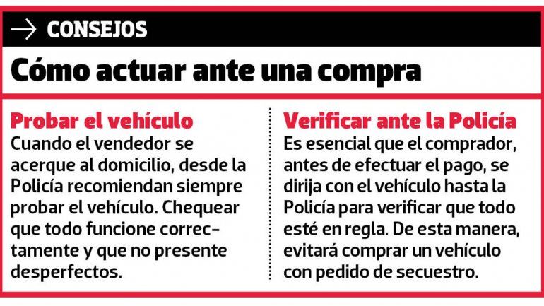 “Les sacan sus ahorros, con lo que les cuesta juntar un mango”, confió una fuente judicial, y detalló que se trata de vendedores foráneos que se aprovechan de compradores de buena fe, que luego tienen grandes dolores de cabeza al darse cuenta de que el vehículo tenía pedido de secuestro por robo.