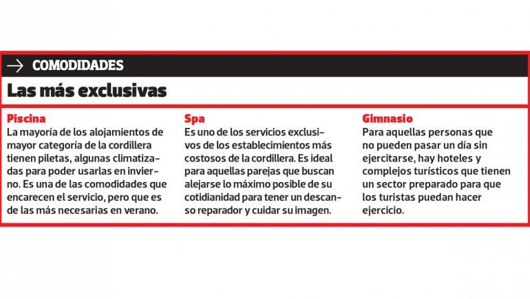 Las cabañas, que son un clásico de las localidades cordilleranas, manejan valores similares. Las de una estrella tienen un piso de 4 mil pesos por día, las de dos se mueven entre los 4500 y los 5 mil pesos, y las de tres cuestan de 6 mil para arriba.