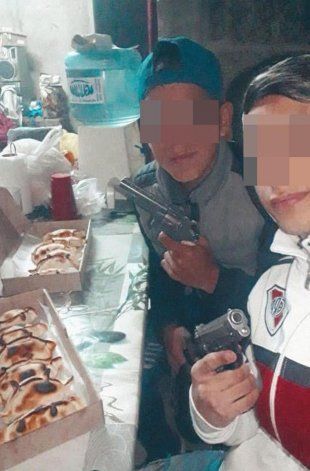 Además del video en el que se lo ve a los tiros, circulan también fotos del menor junto a otros de su misma edad, en la que entre empanadas y bebidas, se ven armas de grueso calibre que, según cree la Policía, les son provistas por un tercero para que salgan a robar.