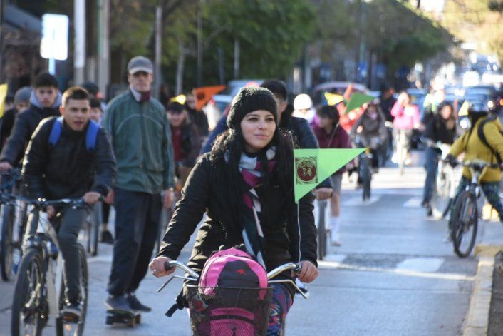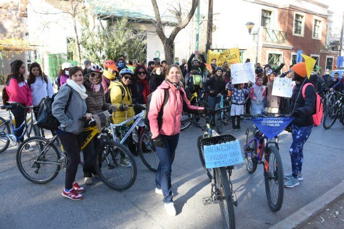 Estudiantes y profesores del CPEM 34 realizaron este jueves una bicicleteada para reclamar ante el Consejo Provincial de Educación (CPE) celeridad en los arreglos edilicios, motivo por el que no tienen clases desde el 5 de mayo. A la particular protesta se sumaron la EPET 8 y la Escuela de Música.
