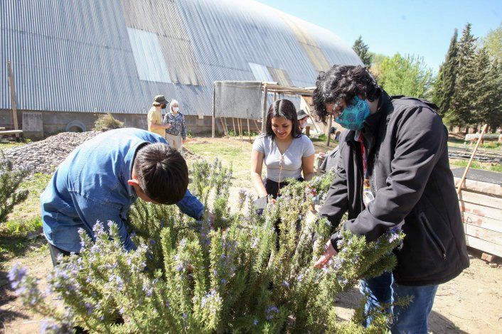 “Los jóvenes ya tienen bastante conocida la experiencia agropecuaria, tienen buenas preguntas, son muy intensos en sus inquietudes. Y eso me permite poder avanzar más profundo en el sentido agroecológico del taller, mirar la producción con menos herramientas y más observación”, explicó Alicia, profesora del taller de aromáticas.