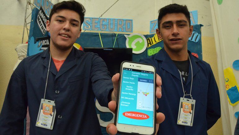 Estudiantes de 5° de la EPET N°11 de Zapala presentaron en la feria una aplicación para el celular que brinda a sus usuarios un corredor seguro. Los provee de contactos de móviles policiales de la zona y los teléfonos de todos los directores de las escuelas, además de contar con botón anti pánico que alerta al móvil policial más cercano.