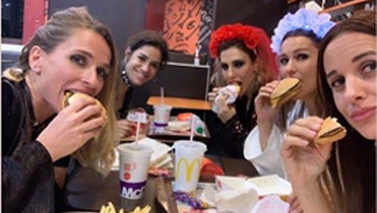 Pero lo que fue una noche larga en lugares exclusivos terminó para la conductora y algunas de sus amigas de una forma habitual para muchos. Al momento del “bajón”, Pampita y cuatro íntimas se dirigieron a un local de McDonalds.