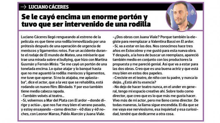 Me encantaría, sí, claro. Pero soy consciente de que es muy poco el cine que se hace y que un poco siempre llaman a los mismos. Entonces es difícil meterse en el circuito, pero confío que yendo de a poquito, y cuando empiecen a ver los trabajos, va a pasar. Igual, a mí me apasiona actuar más allá del lugar, así que pongo la misma pasión y el mismo amor en la televisión que en el cine.