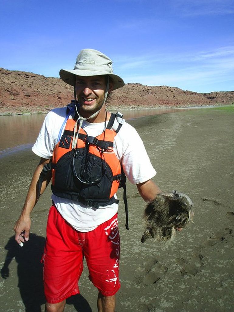 "Así como soy un hombre de agua, me atrapa mucho lo que es el desierto y más nuestro desierto. Está lleno de cosas históricas, de animales raros. Mi viejo se cansó de denunciar hallazgos de dinosaurios, pero antes no le daban mucha bola. Ahora por suerte hay una cuestión de cuidado, pero antes no existía. Los puesteros tienen sus historias y yo soy un tipo que necesita de la ciencia, mi profesión es ciencia, por eso me gusta corroborar lo que me cuentan con los libros. Hasta hace poco se decía que había víboras de Cascabel y hace un tiempo logré cazar esa víbora que se le parece, que extremadamente venenosa", comentó el asiduo visitante de pueblos fantasmas y parajes abandonados que, tras recibirse de maestro mayor de obras en una escuela técnica de Neuquén, se instaló en Buenos Aires para estudiar odontología y buceo, un hobby que le permitió seguir alimentando su afán explorador con amigos en sus vacaciones en la región.