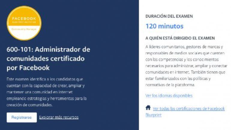 Siempre innovando. La red social Facebook se aventura en un programa para certificar a community manager en español. El curso también está disponible en otros idiomas como inglés, árabe, francés, alemán, indonesio, portugués y tailandés.