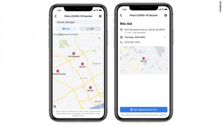 Esta herramienta, informa a los usuarios de Facebook sobre dónde acceder a las vacunas contra el Covid-19 en su vecindario, el horario de atención de los sitios de vacunación, la información de contacto y los enlaces para definir una cita.