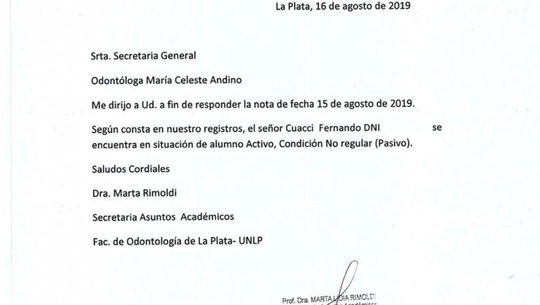 A partir de la denuncia se develó un hecho inédito que dejó perplejos a los profesionales de la zona: Cuacci ejercía la profesión en un consultorio en City Bell desde hacía más de 14 años. Estaba inscripto en la Facultad de Odontología de la Universidad Nacional de La Plata (UNLP) y había cursado algunas materias, pero nunca había terminado la carrera.