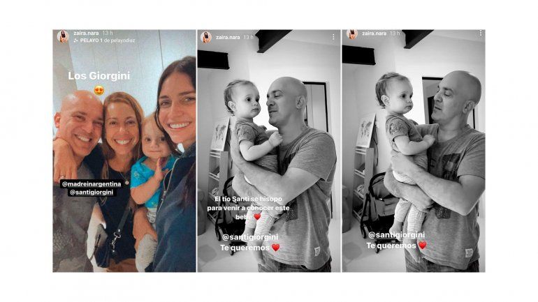 Para concretar su visita a la modelo, el cocinero que estuvo acompañado por su mujer y sus hijas, se tuvo que realizar un test de Covid-19, según la menor de las Nara contó en una de sus historias en Instagram. “El tío Santi se hisopó para venir a conocer a este bebé, te queremos”, escribió junto con una foto de él tomando en brazos al pequeño.