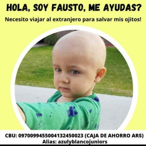 A Fausto lo apodaron “El bravo” desde la panza, mucho antes de que le tocara luchar la más temible de las batallas. Con apenas un año y diez meses, le diagnosticaron una rara especie de cáncer en ambos ojos. Respondió bien a la quimioterapia y salvó su hermosa mirada de milagro, pero necesita completar el tratamiento en Suiza. Ana y Germán, sus papás, iniciaron una colecta por redes sociales, mientras preparan las valijas para iniciar en pocos días más, el 11 de enero, el viaje más difícil de sus vidas.