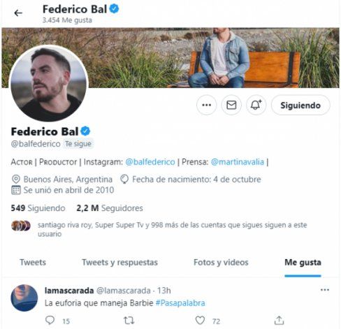 Hasta ahí todo muy normal, pero el que dio la nota fue Fede Bal, ex pareja de Barbie Vélez, con quien terminó en muy malos términos y con denuncia de violencia incluida, es que el hijo de Carmen Barbieri publicó un llamativo mensaje en su cuenta de Twitter, que por su puesto tuvo repercusiones.