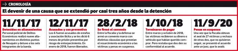 En diciembre pasado, la fiscalía indicó que los acusados ya habían resarcido a todas sus víctimas y se presentó el acuerdo, pero los tiempos demoraron la audiencia para su homologación. Fueron varios meses de idas y vueltas, donde se buscó la mejor alternativa. La fiscalía les explicó a cada una de las 29 víctimas el acuerdo y les indicó que recibirían un resarcimiento económico; y también buscó que los estafadores recibieran una pena.