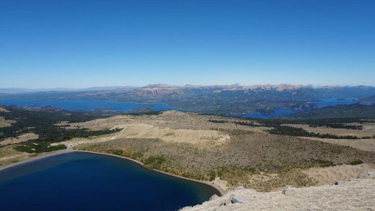 Desde la cima se observa el Lanín y los volcanes chilenos de Villarrica, Llaima, Lonquimay y Tolhuaca.